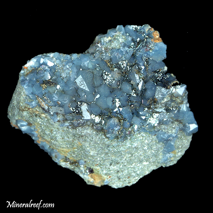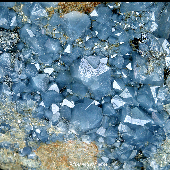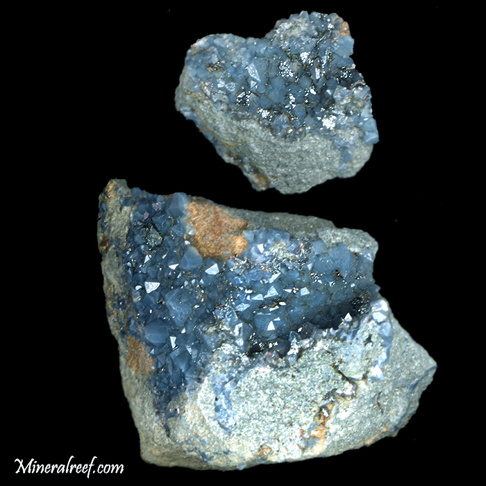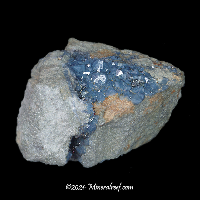Única geoda completa (las dos piezas encajan perfectamente) de cuarzo azul conseguida por nosotros en 1993. Excepcional belleza y calidad de los cristales, con buen color azul, acompañado de cristales de hematites. Ejemplar de nuestra colección privada. Medidas totales: 77,50 x 68,70mm. Arista del cristal mayor 6,50mm. Olvera, Cádiz.